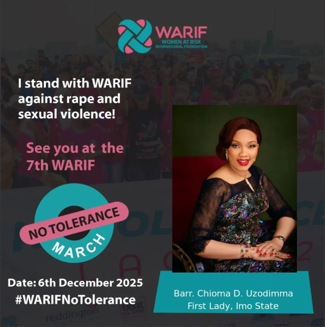 FIRST LADY OF IMO STATE, BARR.?CHIOMA?UZODIMMA BACKS THE 7TH WARIF “NO TOLERANCE” MARCH ON?DEC?6?2025 TO COMBAT GENDER?BASED VIOLENCE AND ONLINE ABUSE