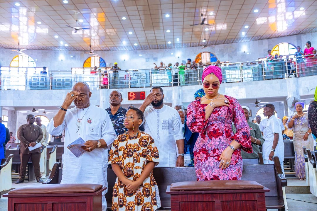 GOVERNOR HOPE UZODIMMA AND HIS WIFE, H.E. BARR. CHIOMA UZODIMMA, CELEBRATE THE ANNUAL THANKSGIVING AND CHRISTMAS MASS AT ST. ROSE OF LIMA CATHOLIC PARISH OMUMA, JOINED BY FAMILY AND WELL-WISHERS