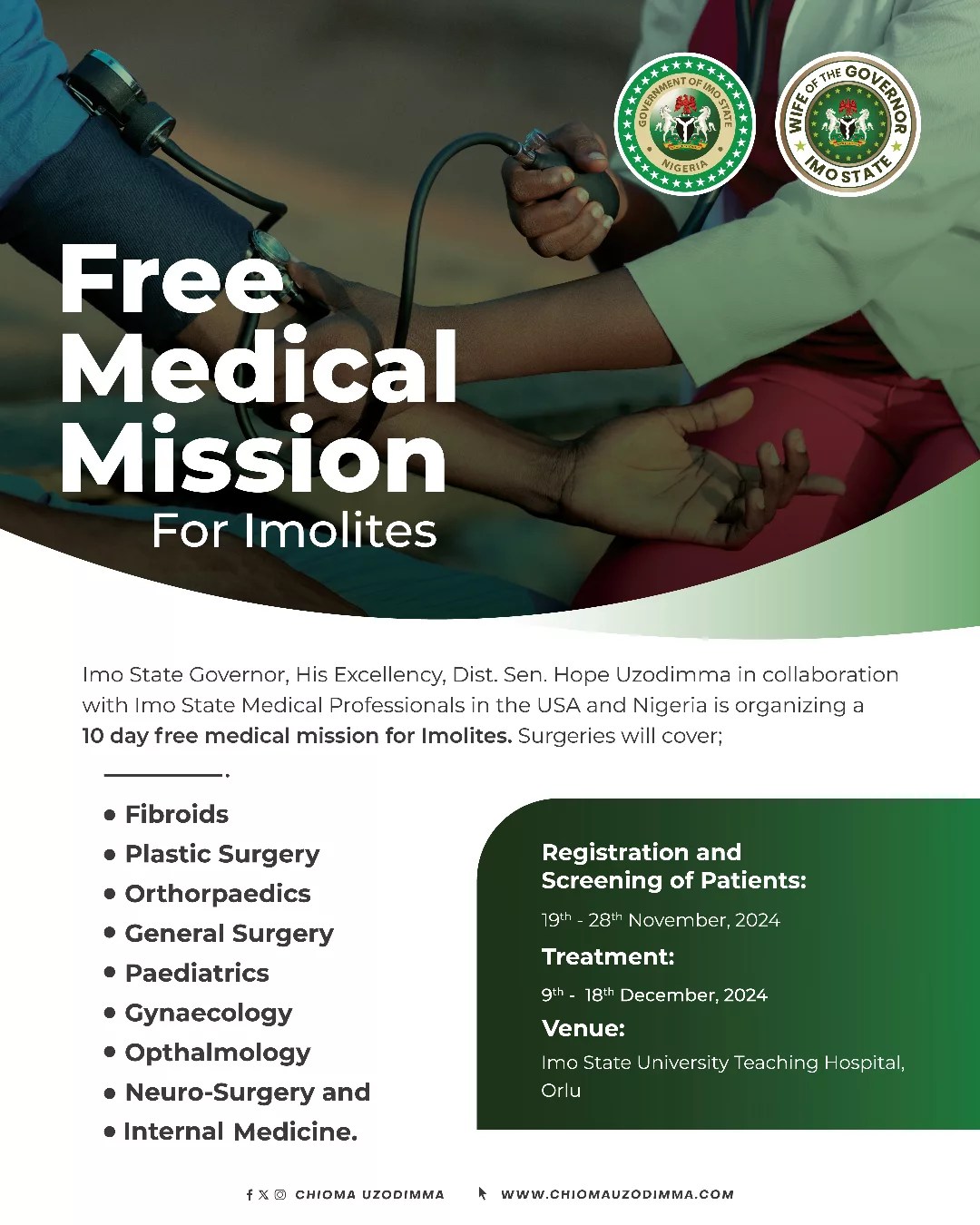 IMO STATE GOVERNMENT TEAMS UP WITH US AND NIGERIAN MEDICAL PROFESSIONALS FOR 10-DAY FREE MEDICAL MISSION PROVIDING SPECIALIZED CARE FROM NOVEMBER 19 TO DECEMBER 18, 2024