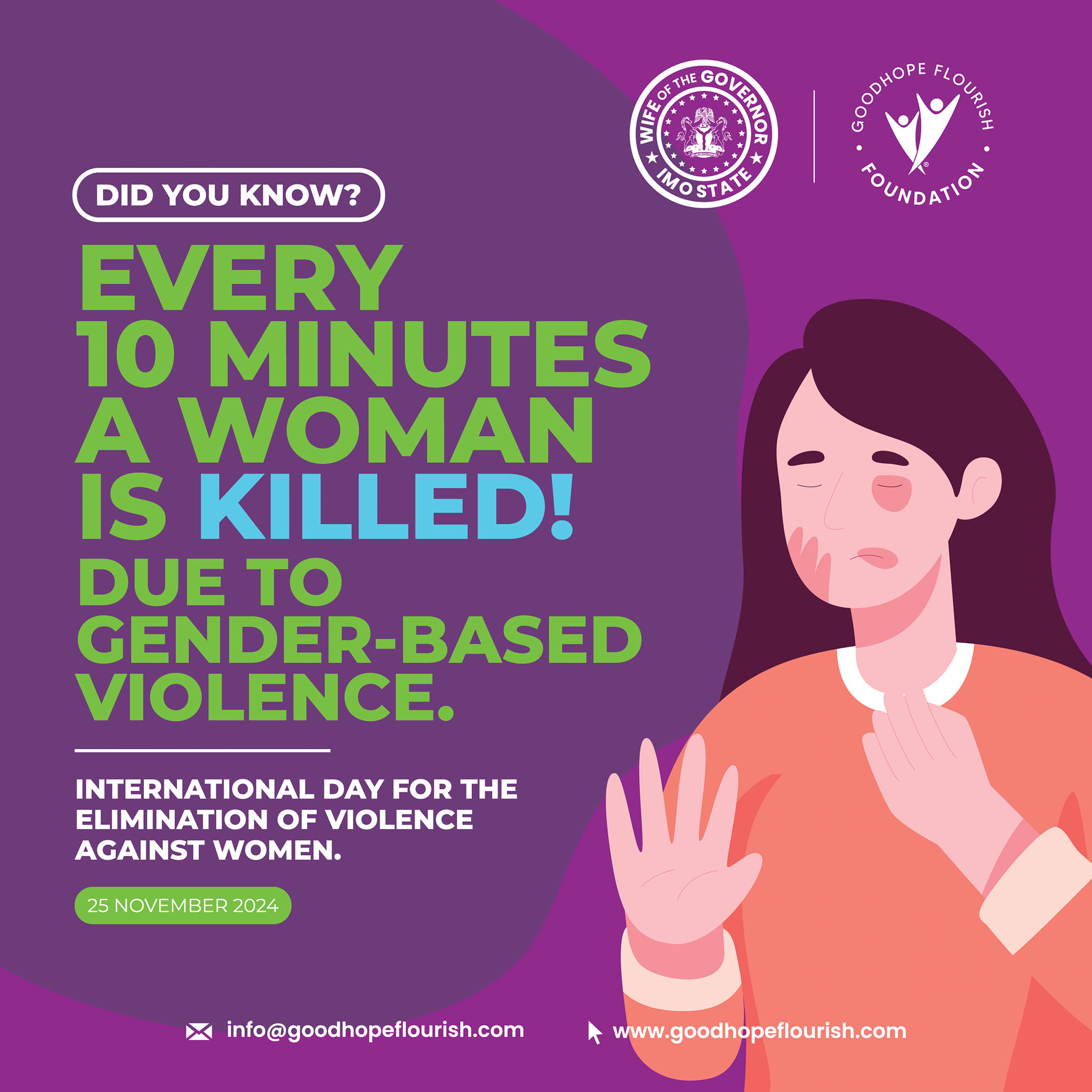 IMO FIRST LADY CHIEF BARR. CHIOMA UZODIMMA MARKS INTERNATIONAL DAY FOR THE ELIMINATION OF VIOLENCE AGAINST WOMEN, HIGHLIGHTING THE URGENT NEED TO ADDRESS GBV AND SUPPORT SURVIVORS